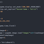 네 돌아온 테트리스 제작입니다. 위와 같은 코드로 게임을 초기화 하고 판을 초기화 합시다. 위의 코드에 대한 설명은 딱히 필요 없을 것 같습니다. 그냥 초기화, 제목 변경, 이미지 로드, 시계 생성 밖에 없으니까요 네 별로 어렵지 않은 코드입니다. 게임오버가 되지 않은선에서 계속해서 루프를 실행합니다. 종료 처리가 들어오면 종료하라... 각 키에 따른 처리인데, x_position 과 y_position 을 1빼고 1더하고 하는 식으로 위치를 조정합니다. 이때 spacebar 의 처리가 독특한데 조금만 생각해보면 쉽게 알 수 있습니다. 한칸 내렸을때 블럭이 충돌하지 않는다면 한칸 내리고, 또 충돌하지 않는다면 한칸 내리고, 또 충돌하지 않는다면 한칸 내리고.... 하면서 충돌할때 그만하고 그곳에 블럭을 ..